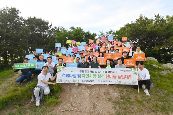 [아시아월드뉴스] 경북교육청은 22일 본청 직원 140여명이 참여한 가운데 도청 신도시 소재 검무산 일원에서 ‘청렴 다짐과 자연사랑 실천 한마음 등반대회’를 가졌다.