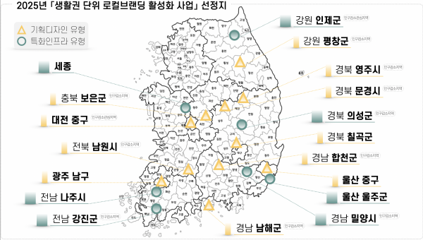 선정된 지자체는 지역 고유성을 바탕으로 생활권 전체를 아우르는 로컬브랜딩 종합계획을 수립하고 다양한 부처 및 민간사업과 연계도 추진할 예정이다.