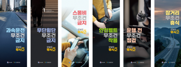‘오늘도 무사고’라는 통합된 메시지 아래, 다음과 같은 6대 안전수칙 과속운전 무조건 금지, 무단횡단 무조건 금지, 스몸비 무조건 금지, 안전벨트 무조건 착용, 운행 전 무조건 점검, 장거리 무조건 휴식 등을 중점 홍보할 계획이다.