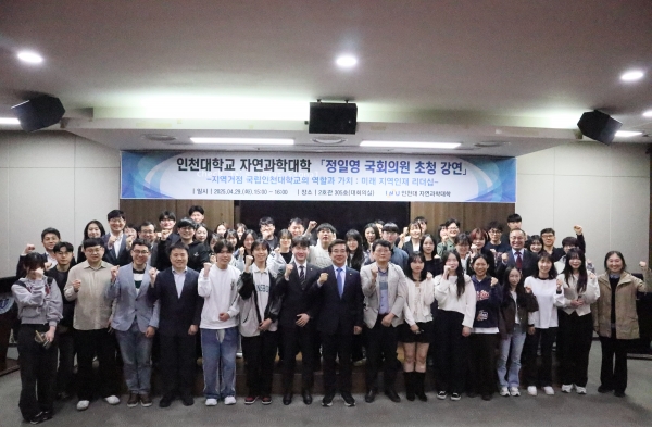 29일 인천대가 정일영 의원을 초청한 자연과학대학 ‘미래 지역인재 리더쉽 특강’에서는 인천대 학생을 대상으로 특강이 진행됐다.