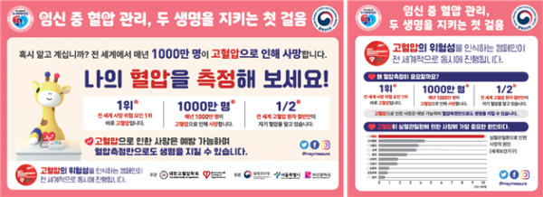 이에 올해는 여성, 특히 임신부의 심혈관 건강을 중점적으로 관리하고 임신 중 혈압 관리의 중요성을 널리 알리고자 임신부를 중점 홍보 대상으로 설정해, “임신 중 혈압 관리, 두 생명을 지키는 첫 걸음”이라는 슬로건 아래 혈압측정 및 건강상담을 제공하는 현장 캠페인을 진행한다.