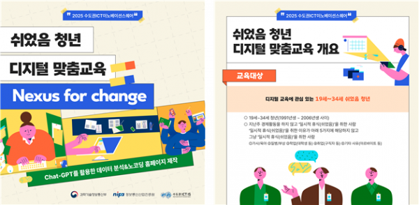 교육은 경제활동을 하지 않고‘일시적 휴식' 상태에 있는 만 19세부터 34세 사이의 청년을 대상으로 해 생성형 인공지능을 활용한 콘텐츠 제작 기술교육 등이 제공된다.
