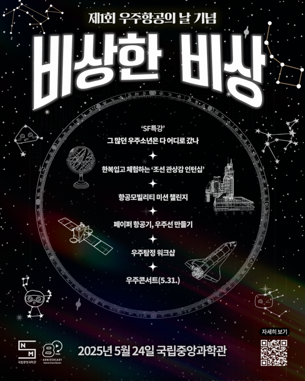 [아시아월드뉴스] 국립중앙과학관은 올해 처음 국가기념일로 지정된‘우주항공의 날’을 맞아 과학문화행사 ‘비상한 비상’을 5월 24일 토요일 하루 동안 개최한다.