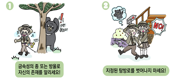특히 가방걸이용 종 등 소리나는 물품을 통해 자신의 존재를 알려야 반달가슴곰이 먼저 피한다.