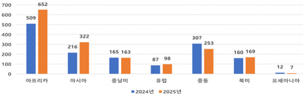 특히 주요 3개국의 누적 통보문 건수는 미국, 중국, EU 등 281건으로 전년 동기 241건 대비 16.6% 증가했다.