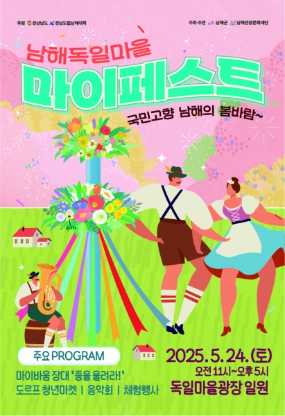 [아시아월드뉴스] 문화체육관광부와 한국관광공사가 선정한 ‘2025~2026 한국인이 꼭 가봐야 할 우수관광지 100선’에 선정된 남해 독일마을에서 오는 24일 독일 전통 봄맞이 축제인 ‘2025 독일마을 마이페스트’ 가 개최된다.