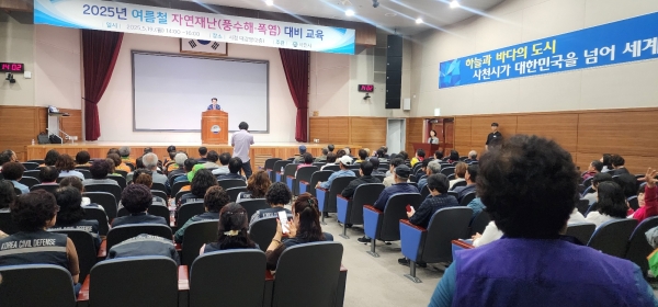 [아시아월드뉴스] 사천시는 19일 시청 대강당에서 지역자율방재단과 이·통장, 읍면동장, 재난업무담당자를 대상으로 “2025년 여름철 풍수해 대비 교육”을 실시했다.