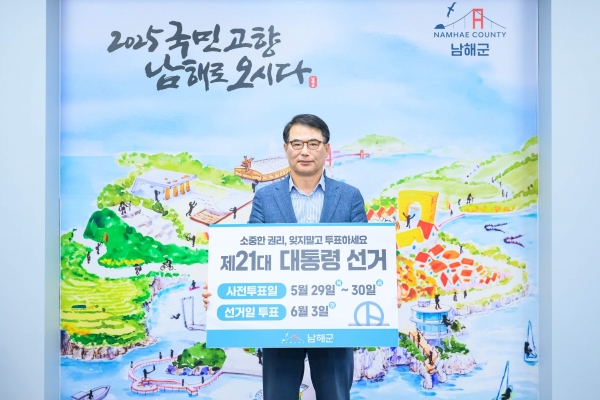 [아시아월드뉴스] 남해군이 오는 6월 3일 치러지는 제21대 대통령 선거를 앞두고 전 세대를 아우르는 투표 참여 분위기 조성에 나섰다.