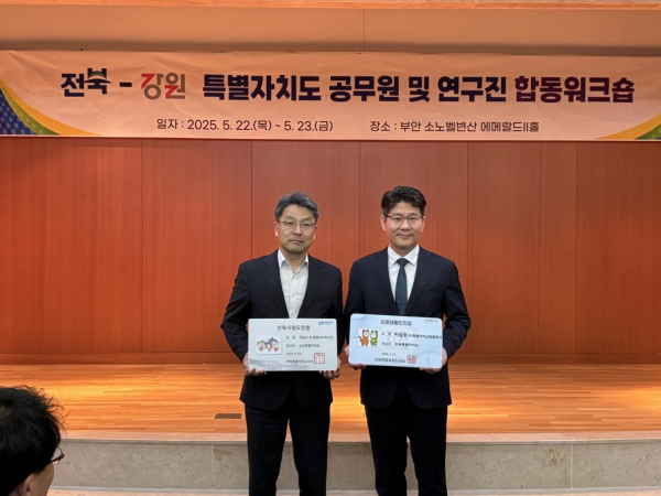 [아시아월드뉴스] 강원특별자치도는 전라북도와의 상생협력 강화를 위해 ‘강원-전북 특별자치도 공무원 및 양도 연구원 합동 워크숍’을 5월 22일부터 23일까지 양일간 전북 부안 소노벨 변산에서 개최했다고 밝혔다.