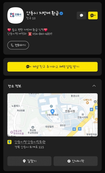 [아시아월드뉴스] 안동시가 지방세 환급을 보다 간편하게 신청할 수 있도록 ‘지방세 환급신청 전용 카카오톡 채널’을 개설했다.