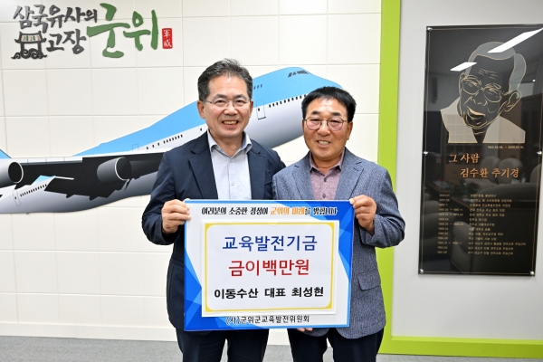 [아시아월드뉴스] 군위 이동수산는 지난 22일 군위군청을 방문해 지역의 교육 발전과 인재양성을 위해 써달라며 교육발전기금 200만원을 기탁했다.