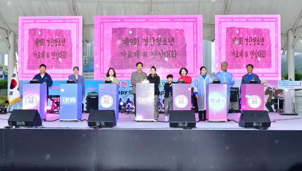 [아시아월드뉴스] 경산시에서는 24일 중산지 야외공연장에서 청소년과 시민 500여명이 참석한 가운데‘제9회 경산청소년가요제&댄싱대회’를 성황리에 개최했다.