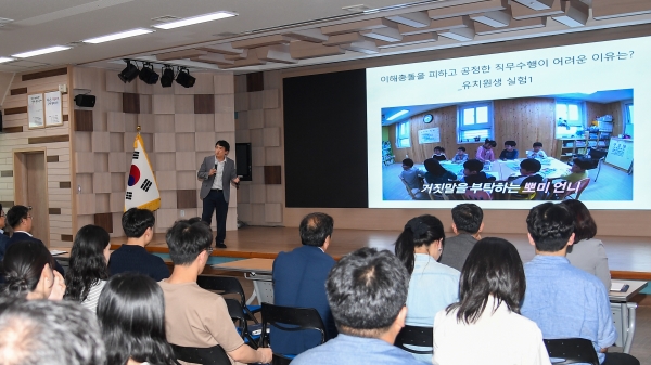 강사로는 국민권익위원회 청렴교육 전문강사인 정승호 강사가 초빙되어 ‘알쏭달쏭 헷갈리는 이해충돌방지법, 청탁금지법, 행동강령 길라잡이’를 주제로 강의를 진행했다.