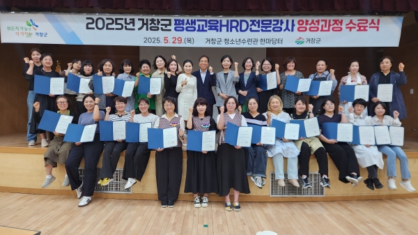 [아시아월드뉴스] 거창군은 지난 29일 거창군 청소년수련관에서 평생학습 강사 34명이 참여한 가운데 평생교육HRD전문강사 양성과정 수료식을 개최했다.