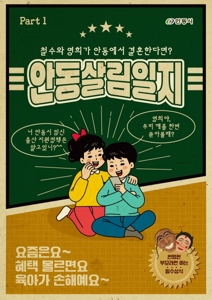 안동시는 철수, 영희와 같은 예비 부모와 출생가정을 위해 임신부터 출산까지 체감도 높은 다양한 시책을 추진해 아이 키우기 좋은 환경 구축에 힘쓰고 있다.