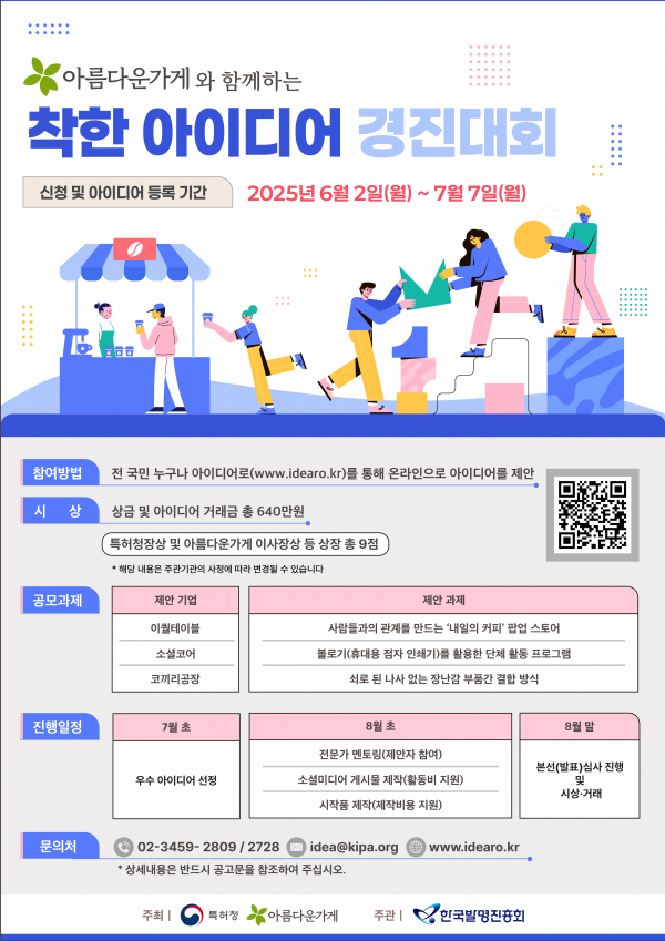 [아시아월드뉴스] 특허청은 아름다운가게와 함께 6. 2.~7. 7.까지 ‘2025 착한 아이디어 경진대회’를 통해 국민의 창의적인 아이디어를 모집한다고 밝혔다.