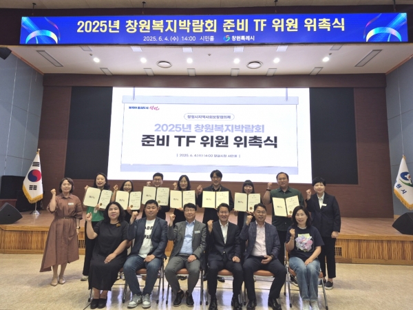 [아시아월드뉴스] 창원특례시는 4일 시청 시민홀에서 2025년 창원복지박람회의 성공적인 개최를 위한 ‘준비 TF’ 위촉식을 개최했다.