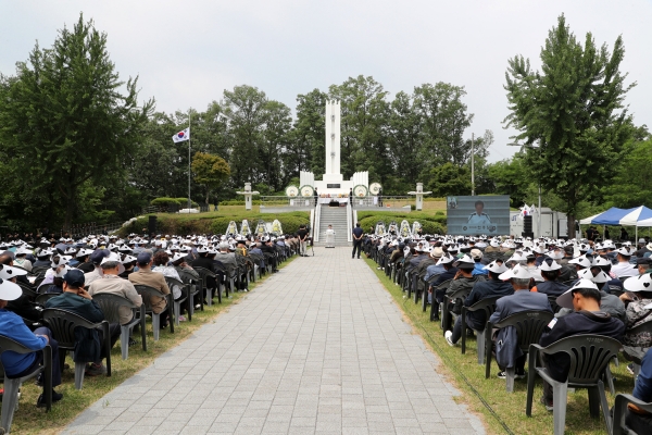 이날 행사에서는 이른 아침부터 지역 학생들과 자원봉사자들이 충혼탑 입구에서 태극기를 흔들며 보훈 가족과 참석자들을 맞이했고 오전 10시 정각 사이렌에 맞춰 묵념으로 행사가 시작됐다.