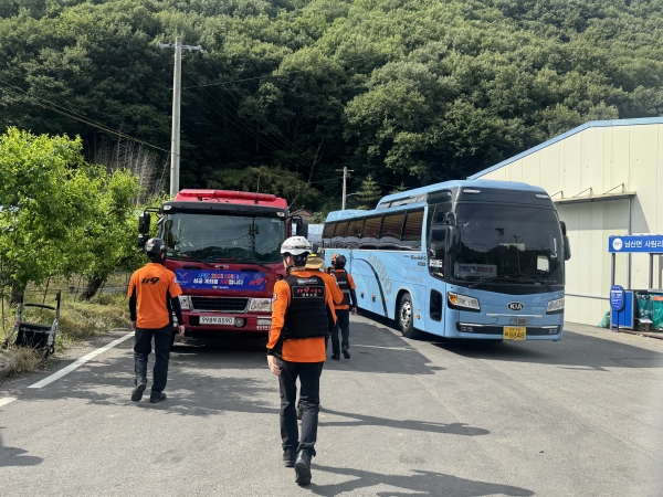 또한, 재난 상황 발생 시 안전하고 신속한 대피를 위해 지난 4월 29일 경산시와 ‘주민대피 긴급이송 업무 협약'을 체결한 관내 전세버스 운송업체 그랜드항공이 훈련에 참여해 사림리 주민들을 안전하게 사림리 마을대피소인 남산면 복지회관으로 이송하는 역할을 수행했다.