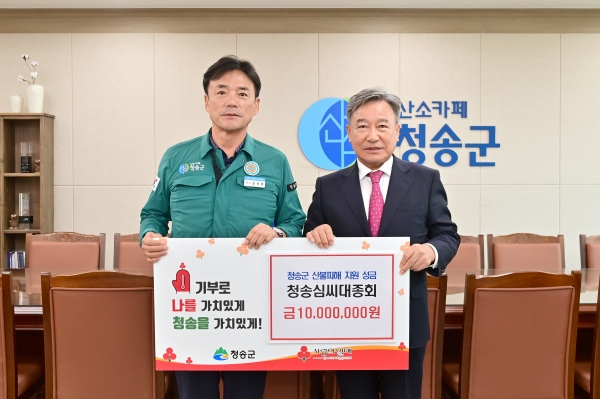 윤경희 청송군수는 “지역의 어려움을 함께 나누며 도움을 주신 모든 분들께 깊이 감사드린다”며 “기부해주신 성금과 물품은 산불 피해 복구와 이재민 지원에 소중하게 사용하겠다”고 전했다.