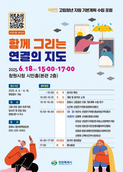 토론에는 김영록 창원특례시의회 시의원, 유민상 한국청소년정책연구원 선임연구위원, 주상희 한국은둔형외톨이부모협회 대표, 김영경 생명의전화종합사회복지관 팀장, 신현재 안무서운회사 디렉터 등이 패널로 참여한다.