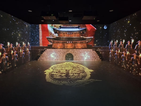 디지털 실감 영상관은 4면 스크린에 통영성의 정문인 남문을 디지털화하고 통제사 행차와 삼도수군의 합동훈련을 3D로 생생하게 체험할 수 있도록 구현해 딱딱한 역사를 좀 더 쉽고 재미있게 다가갈 수 있도록 했다.