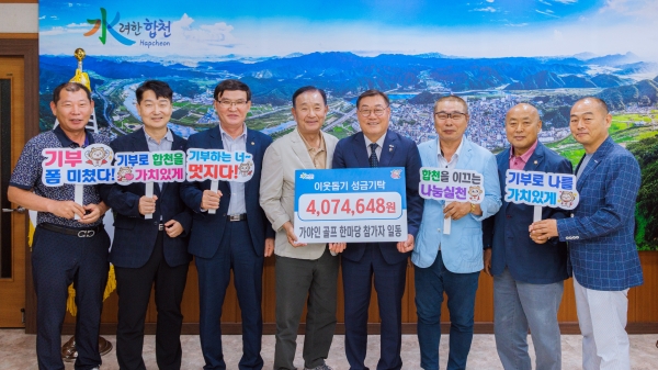 이번 성금은 합천군 가야향우 골프모임에서 주최한 골프 한마당 참가자들이 자발적으로 조금씩 모은 금액으로 소외된 이웃에게 따뜻한 마음을 전하고자 마련됐다.