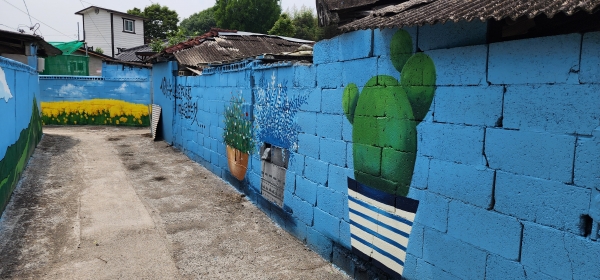 마을 입구부터 노후된 골목 담벽을 위주로 벽화를 조성해 기존 시멘트 담벽의 어두운 분위기를 화려하고 생동감 있는 농산물과 낙동강 정취를 떠오르게 하는 벽화거기를 조성해 마을분위기가 깨끗하고 화사해 졌다.