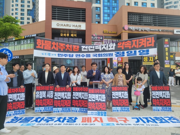[아시아월드뉴스] 송도국제도시 정일영 국회의원이 18일 장성숙 인천시의원, 기형서 구의원, 김희철 전 인천시의원, 조민경 전 연수구의원 등 지역 주민 대표와 송도 화물차주차장 건립 반대 및 대체부지 이전 촉구 기자회견을 열고 인천시가 신속히 화물차주차장 건립을 취소하고 대체부지로 이전을 추진하라는 입장을 밝혔다.