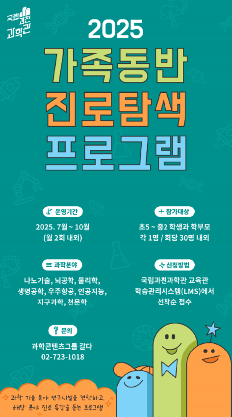 [아시아월드뉴스] 국립과천과학관은 작년에 이어 올해 7월부터 10월까지 청소년과 학부모를 대상으로 ‘2025 가족동반 진로탐색 프로그램’을 운영한다.
