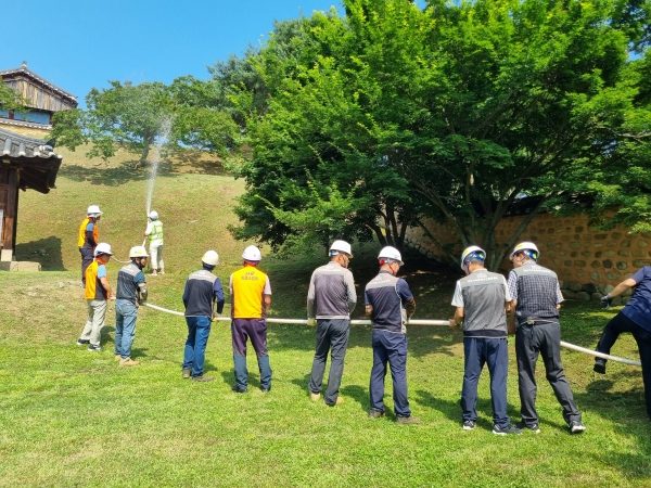 신속한 신고와 출동, 현장 지휘 및 초기 진압까지 일련의 대응 과정을 실전처럼 점검했으며 화재 발생 시 적용되는 문화재 맞춤형 대응 매뉴얼 숙달에 중점을 두었다.