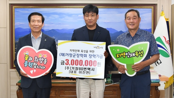 앞으로도 거창군의 장학사업에 관심을 갖겠다”고 기부 소감을 밝혔다.