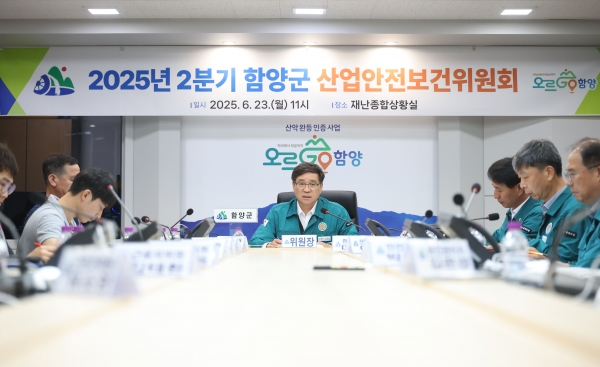 [아시아월드뉴스] 함양군은 6월 23일 오전 함양군 재난종합상황실에서 사업장의 안전 및 보건에 관한 사항을 심의하기 위한 ‘2025년 2분기 산업안전보건위원회’ 회의를 개최했다.