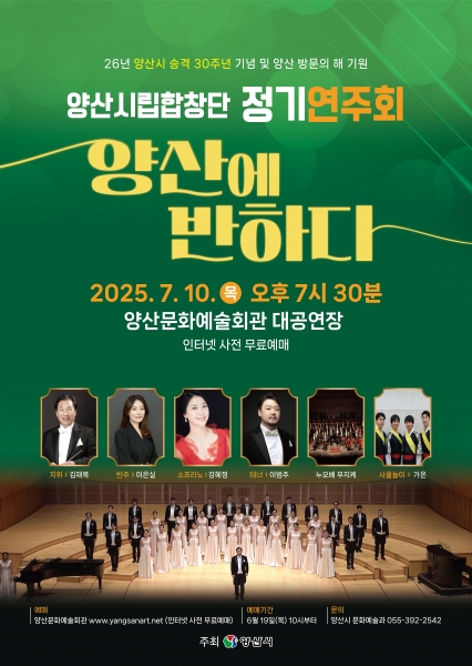 [아시아월드뉴스] 양산시는 7월 10일 목요일 저녁 7시 30분부터 90분간 양산문화예술회관 대공연장에서 양산시립합창단의 정기연주회 '양산에 반하다'를 개최한다.