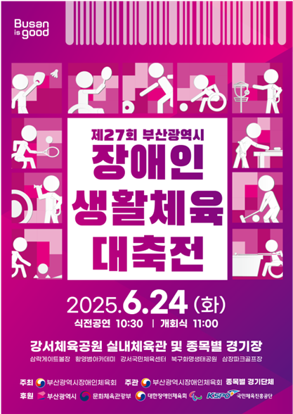 [아시아월드뉴스] 부산시는 오늘부터 30일까지 7일간 강서체육공원, 사직 론볼경기장 등 6곳의 경기장에서 ‘제27회 부산광역시 장애인생활체육대축전’ 이 개최된다고 밝혔다.