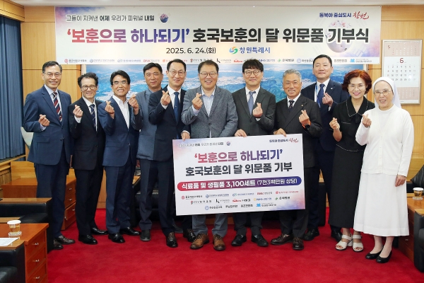 [아시아월드뉴스] 창원특례시는 24일 시청 접견실에서 국가를 위해 희생·헌신한 분들에게 감사와 존경의 마음을 전하고자 ‘보훈으로 하나되기’ 위문사업을 펼쳐 지역사회 13개 기업·기관에서 식료품 및 생필품 3,100세트의 위문품을 기부했다고 밝혔다.