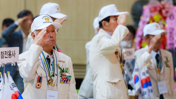 이 장면은 현장을 감동으로 물들이며 참전용사에 대한 깊은 존경과 감사의 마음을 표현하는 시간이 됐다.