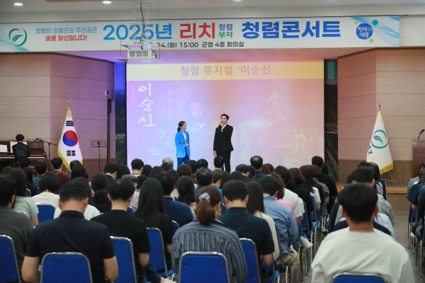 24일 5명의 뮤지컬 배우는 의령군청을 찾아 청렴을 구현하는 서사 구조와 감동의 음악이 있는 열연으로 200여명의 공무원들을 마음을 흠뻑 적셨다.