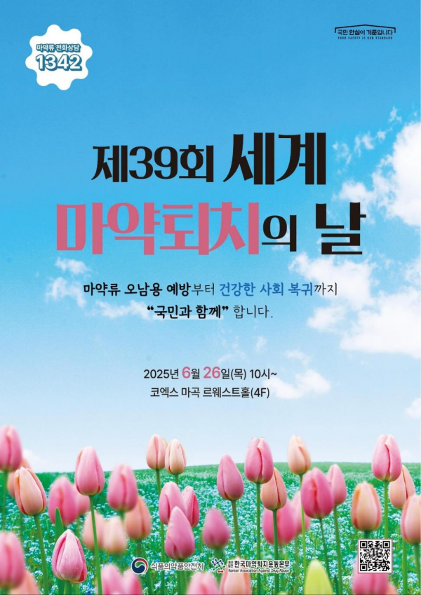 [아시아월드뉴스] 식품의약품안전처는 ‘마약류 오남용 예방부터 건강한 사회복귀까지 국민과 함께한다’를 주제로 ‘제39회 세계마약퇴치의 날 기념식’을 6월 26일 코엑스마곡 컨벤션센터에서 개최했다.