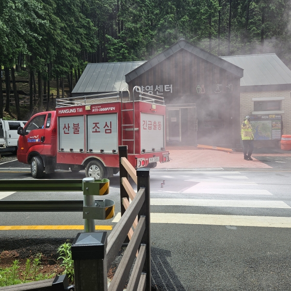 지난 25일 실시된 이번 훈련은 자연휴양림 내 재난 발생 시 신속하고 효율적인 초기대응을 통해 이용객들의 안전과 재산을 보호하기 위해 소방서와 합동으로 진행됐다.