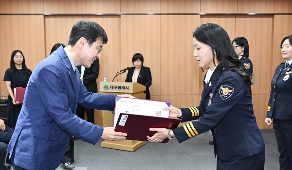 김정기 대구광역시 권한대행 행정부시장은 “승진을 축하드리며 앞으로 더 큰 사명감을 가지고 대구 시민의 안전과 일상 행복을 지키는 데 최선을 다해줄 것으로 기대한다”며 “자치경찰의 복지와 근무 여건 개선에도 지원을 아끼지 않겠다”고 말했다.