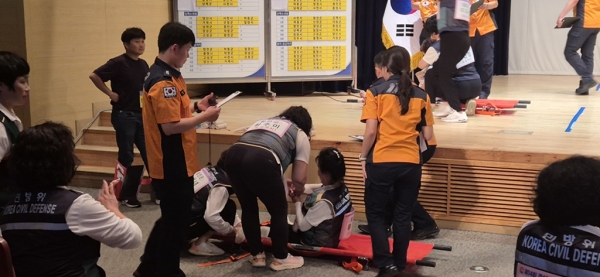 이번 경진대회는 민방위대원의 기량 향상을 위해 경남도내 18개 시군 직장·지역민방위대 및 여성민방위대원 180여명이 참여해 심폐소생술, 환자 응급처치, 방독면 착용 3개 분야로 나눠 경연을 펼쳤다.