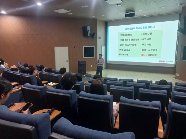 이날 교육에는 대학생 및 사회초년생 등 30여명이 참석했으며 BNK경남은행 이영동 팀장이 강사로 나서 △금융의 기본 개념 △복리와 재무설계 △투자 가치관 정립 등을 주제로 청년 눈높이에 맞춘 실용적 강의를 진행했다.