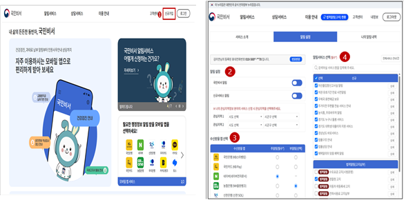 국민비서 서비스는 국민비서 누리집 또는 카카오톡·네이버 앱·토스·금융 앱 등 17개 모바일 앱 에서 가입할 수 있다.