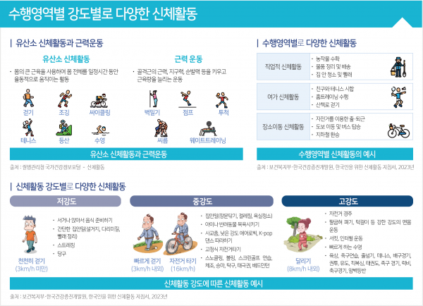 질병관리청은 만성질환 예방은 물론 정신건강 증진을 위해 일상 속 가벼운 움직임뿐만 아니라 숨이 차고 땀이 나는 중강도 이상 신체활동 또한 정기적으로 실천하는 것이 중요하다고 강조했다.