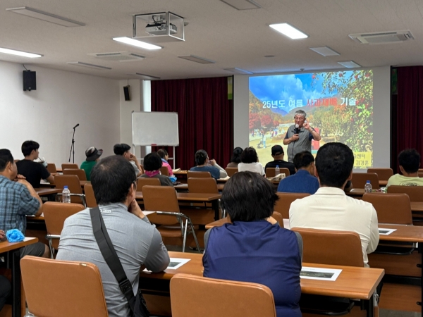 이번 교육은 노동력 절감, 품질 향상, 스마트 과원 기반 조성을 위한 대표 수형 기술 세 가지를 중심으로 진행됐으며 현장 적용 사례를 통해 농가의 이해도와 참여도를 높였다.