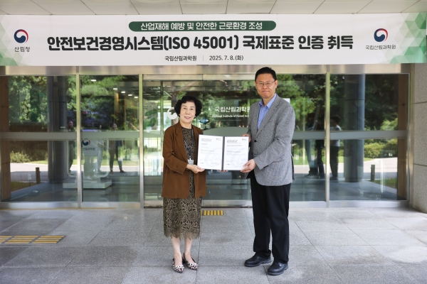 국립산림과학원이 취득한 ISO 45001은 국제표준화기구가 제정한 안전보건경영시스템 국제표준으로 연구자의 안전과 건강을 보호하기 위한 체계적인 경영시스템 구축 여부를 검증하는 제도다.
