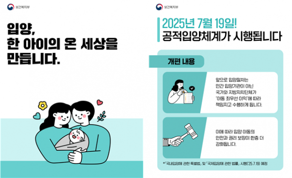 [아시아월드뉴스] 보건복지부와 아동권리보장원은 7월 19일부터 국가와 지방자치단체가 입양 절차 전반을 책임지고 수행하는 공적 입양체계 개편이 본격 시행된다고 밝혔다.