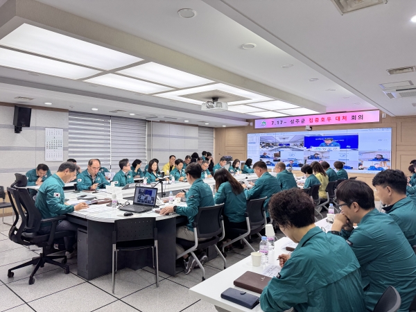 [아시아월드뉴스] 성주군에서는 18일 9시 ‘7. 17부터 시작된 집중호우관련 대처’를 위해 실·과·소, 읍·면장을 대상으로 재난상황실에서 회의를 개최했다.