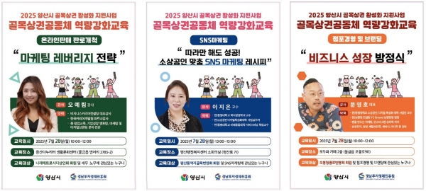 [아시아월드뉴스] 양산시는 ‘골목상권 활성화 지원사업’의 일환으로 해당 사업에 참여 중인 골목상권 공동체를 대상으로 7월 21일과 28일 양일간에 걸쳐‘찾아가는 소상공인 역량강화 교육’을 실시한다고 밝혔다.
